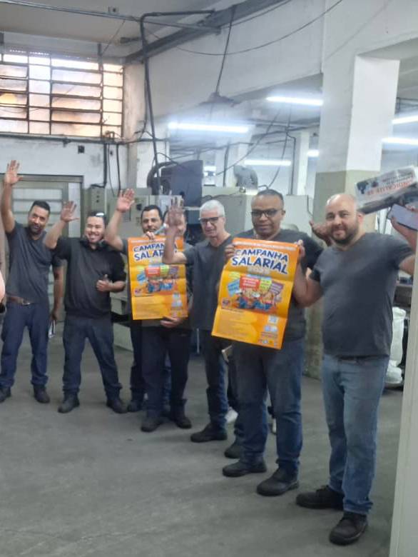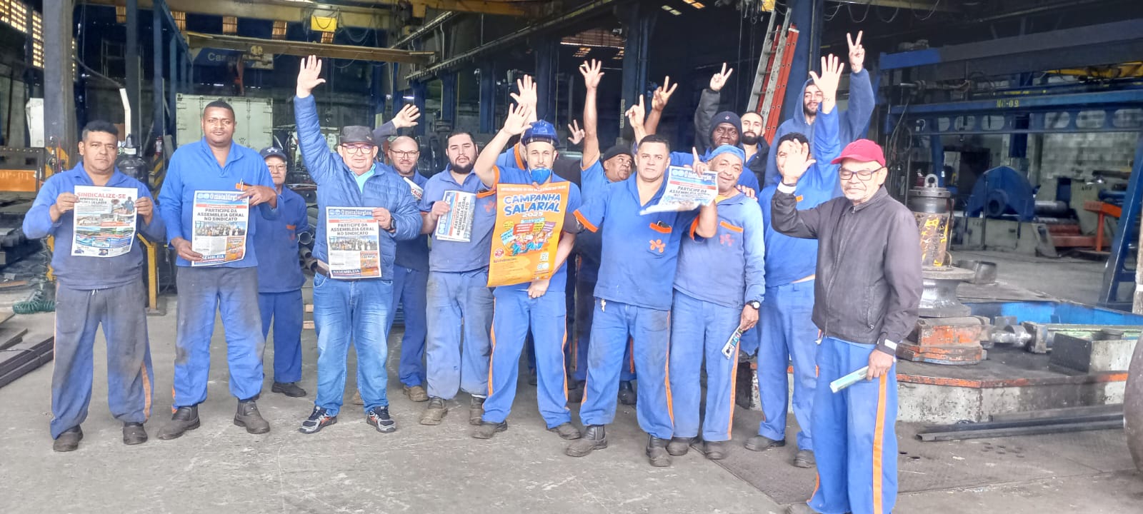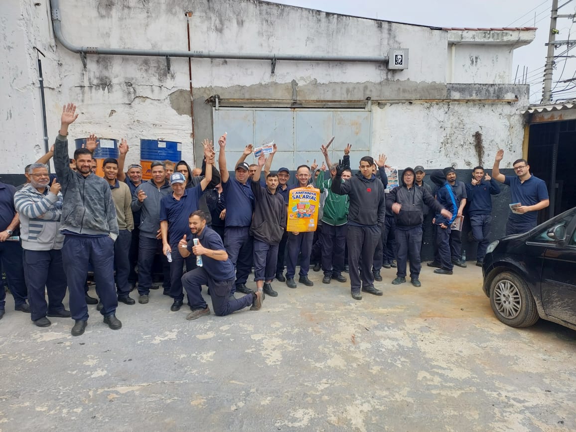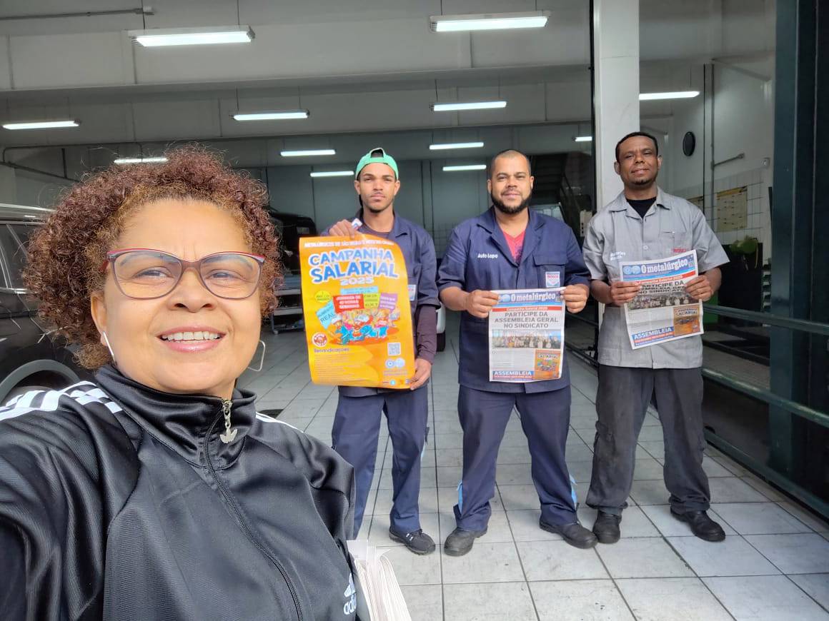 Ação Comunicativa – o Sindicato produziu cartaz, jornal o Metalúrgico e faixa e tem feito encontros diários com os trabalhadores de mobilização nas fábricas, divulgando a Assembleia e as reivindicações da campanha salarial 2025.