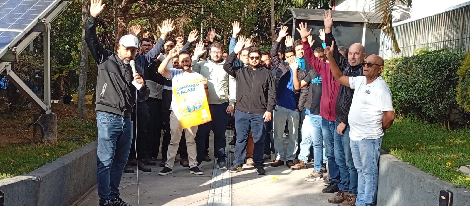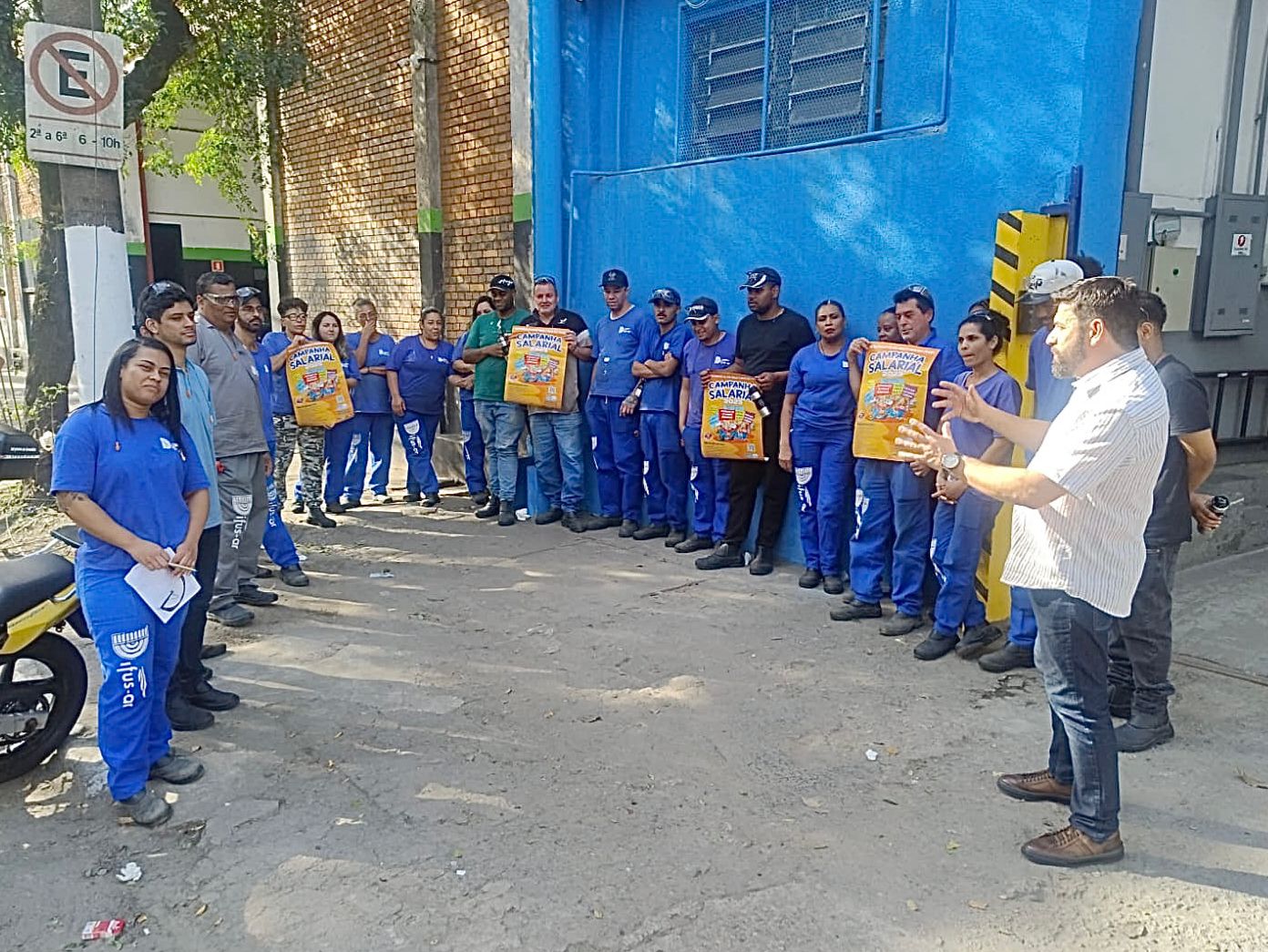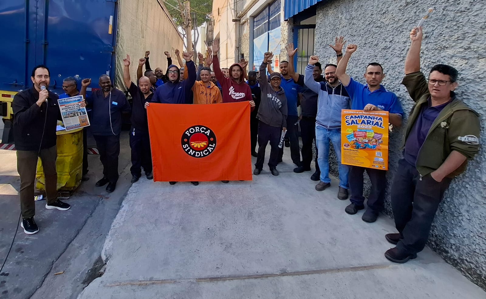 Ação Comunicativa – o Sindicato produziu cartaz, jornal o Metalúrgico e faixa e tem feito encontros diários com os trabalhadores de mobilização nas fábricas, divulgando a Assembleia e as reivindicações da campanha salarial 2025.