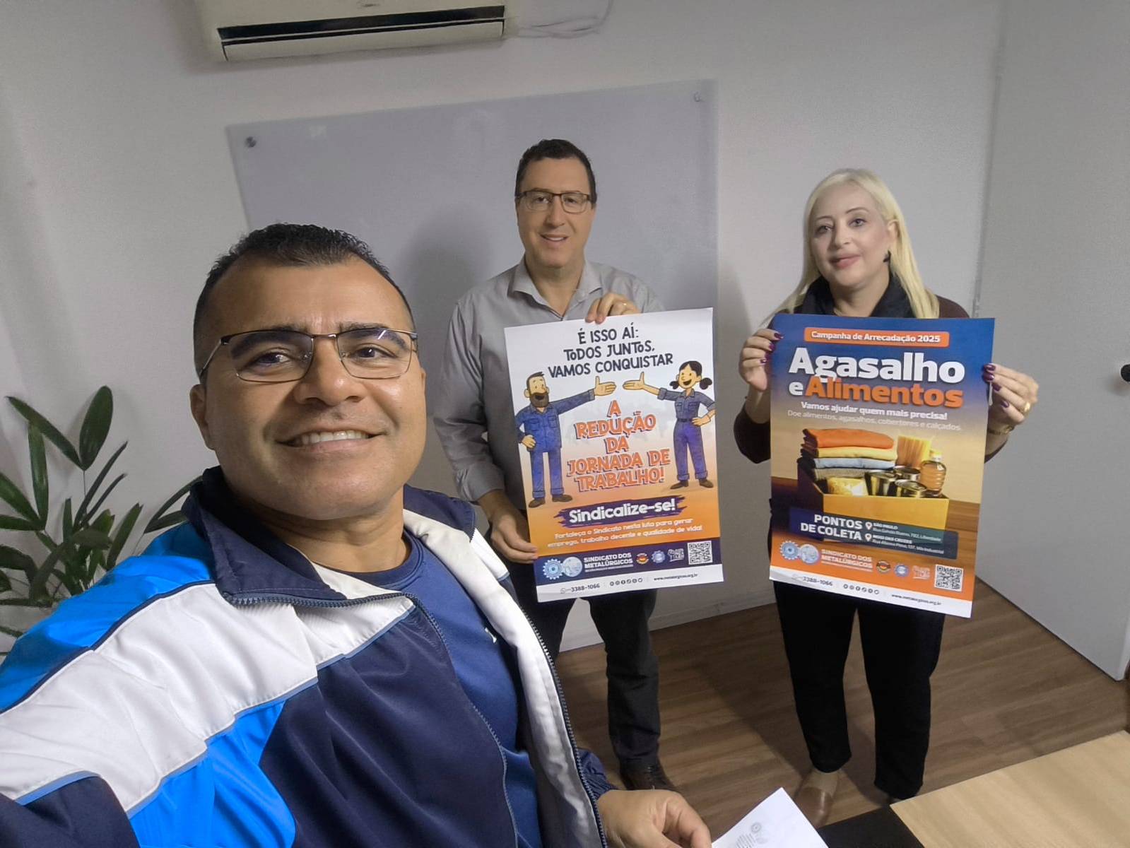 Campanhas do Agasalho-Alimentos, de sindicalização e da redução da jornada de trabalho (sem redução salarial)