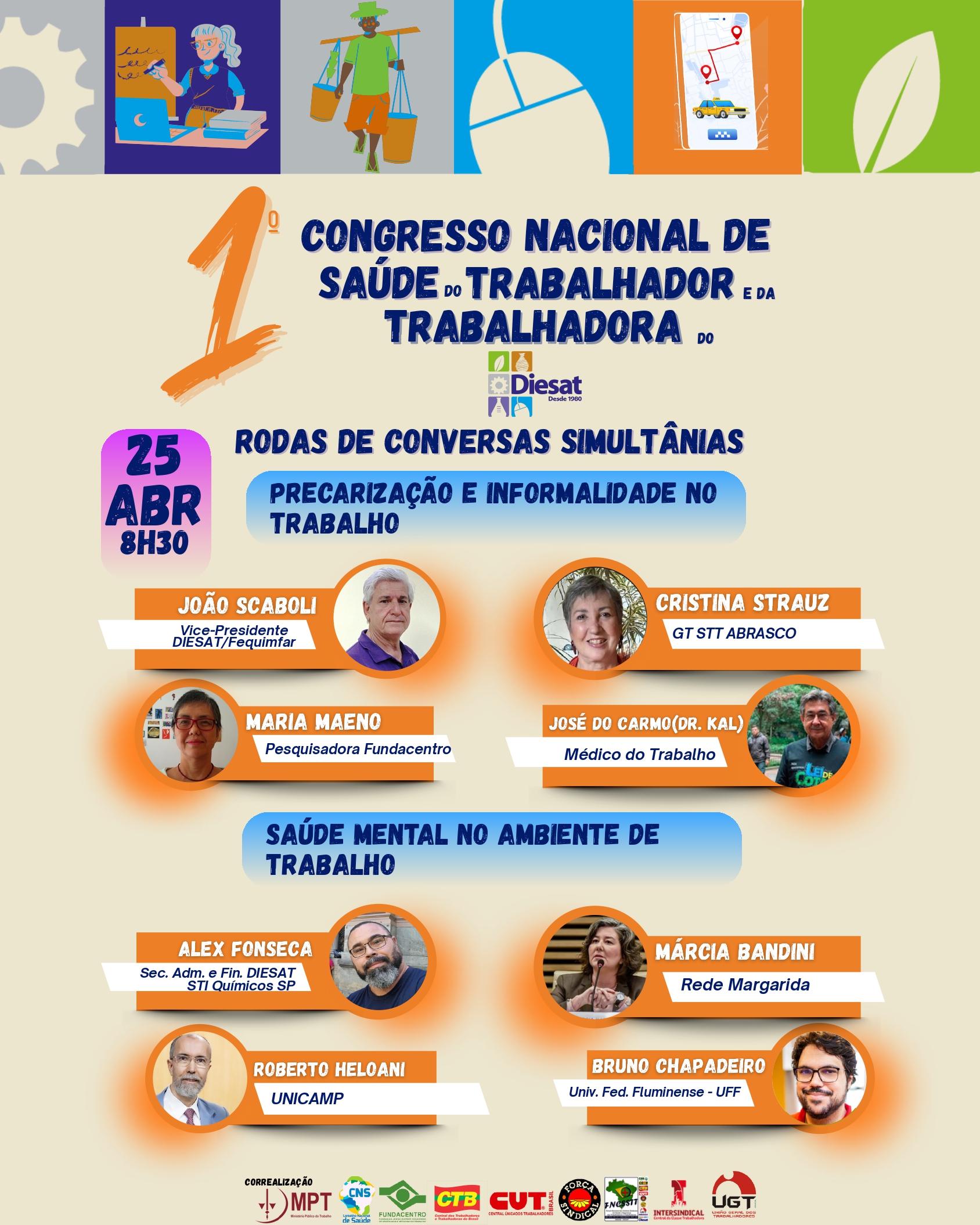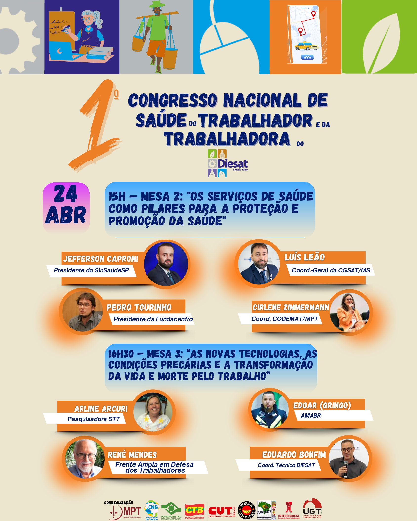 Diesat realiza Congresso Nacional de Saúde do Trabalhador(a) – quinta 24 e sexta 25 de abril – no Palácio do Trabalhador