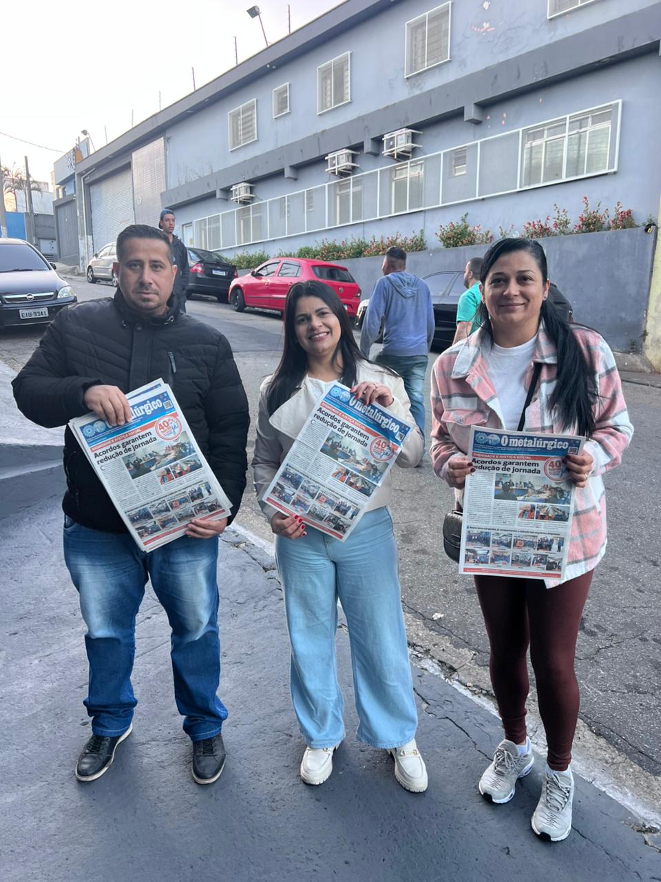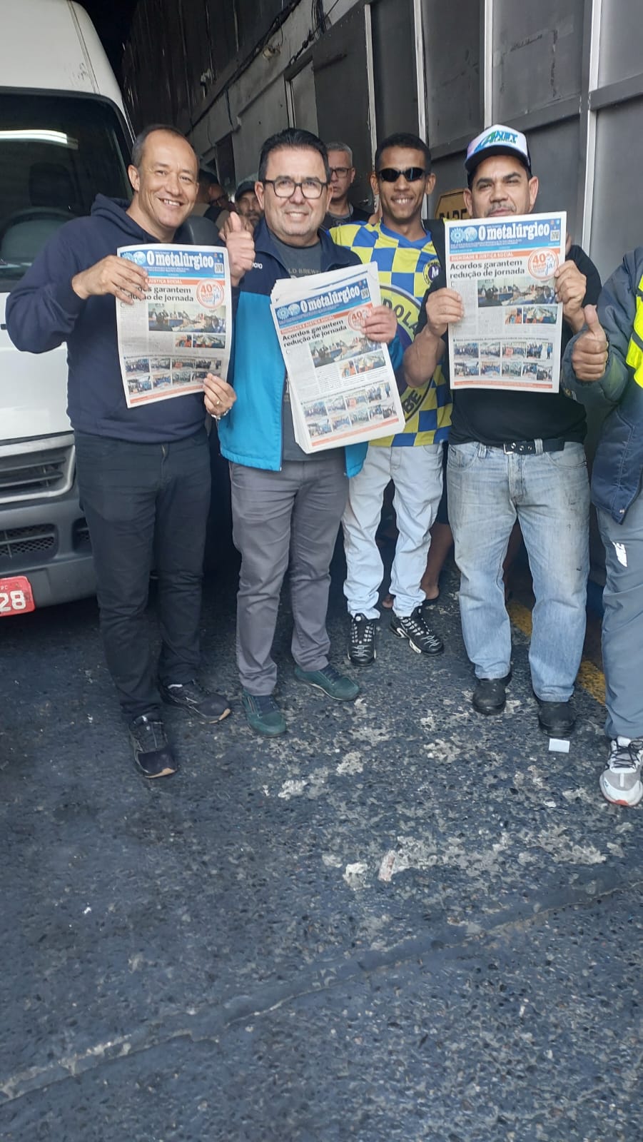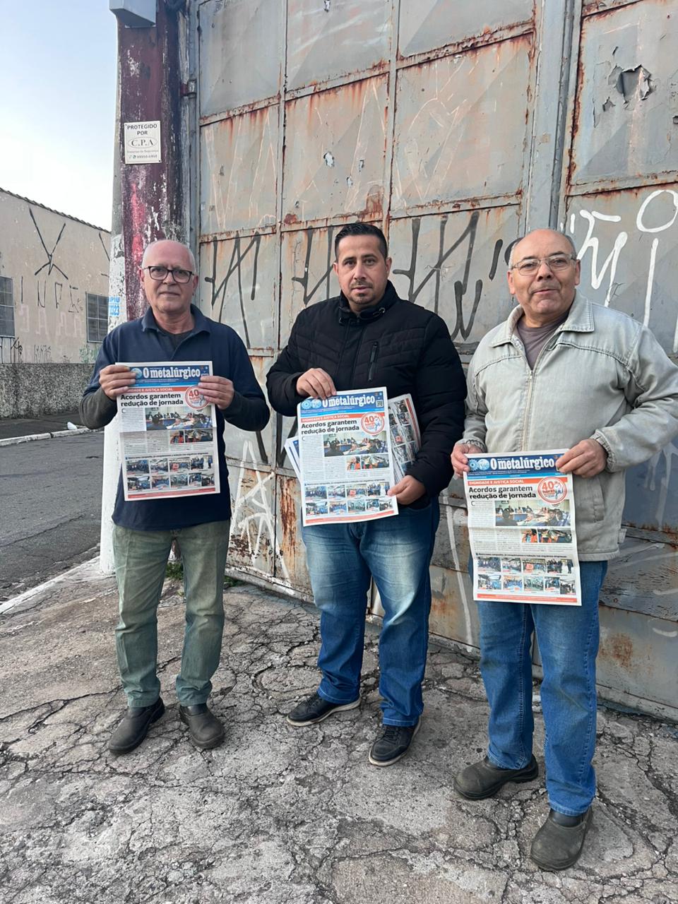 Diretores do Sindicato entregam à categoria o novo jornal O Metalúrgico com ênfase na redução da jornada, sem redução salarial