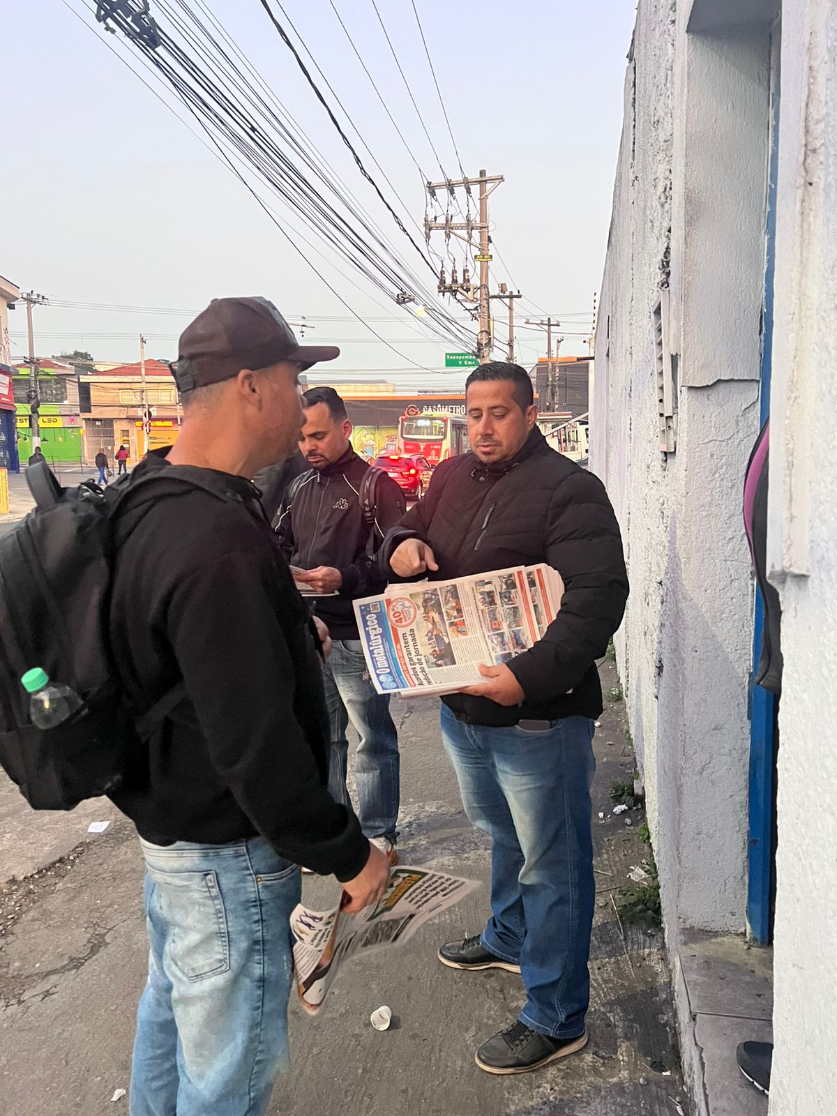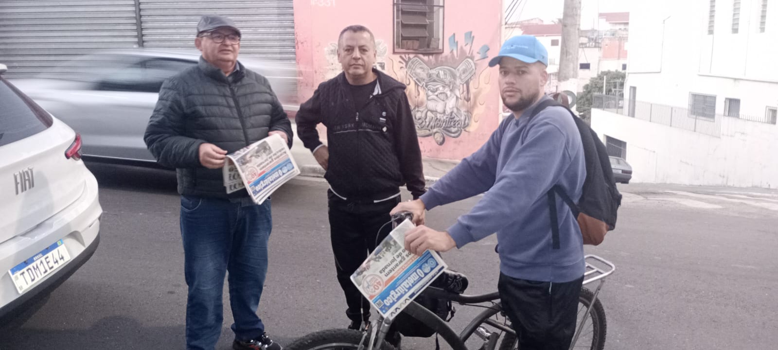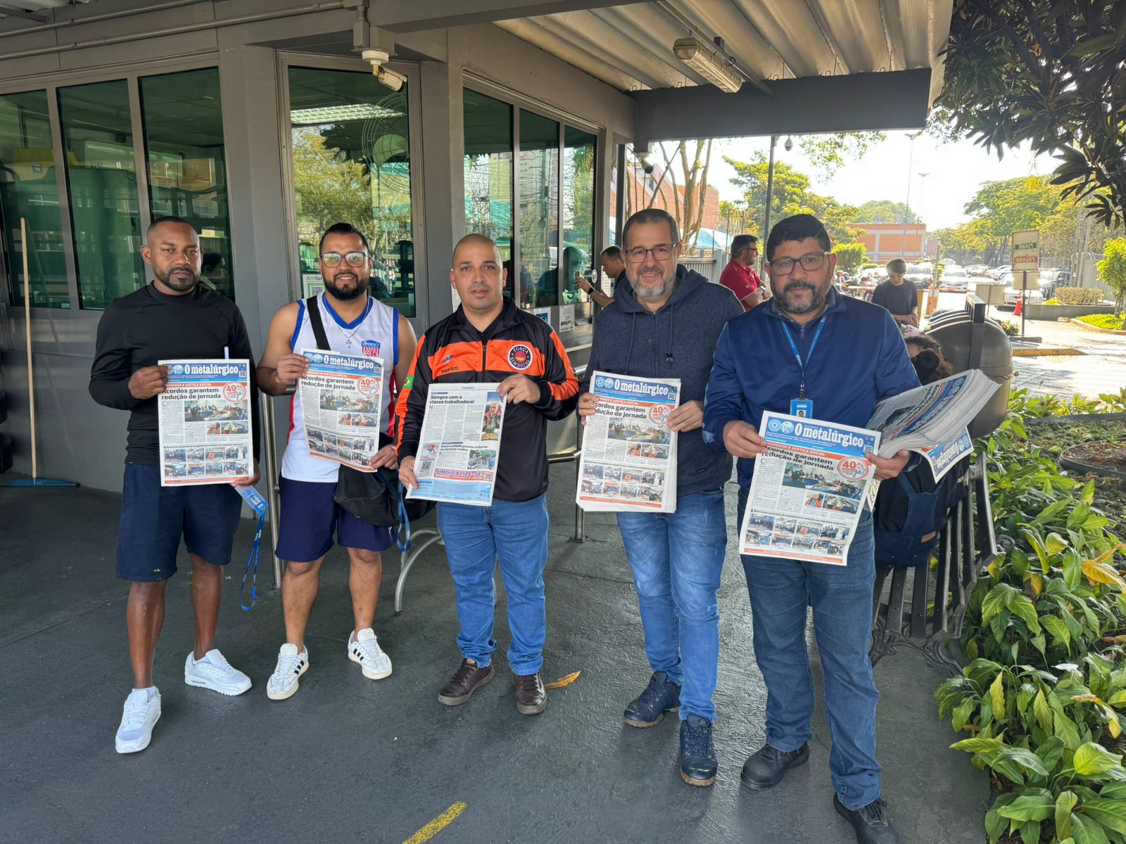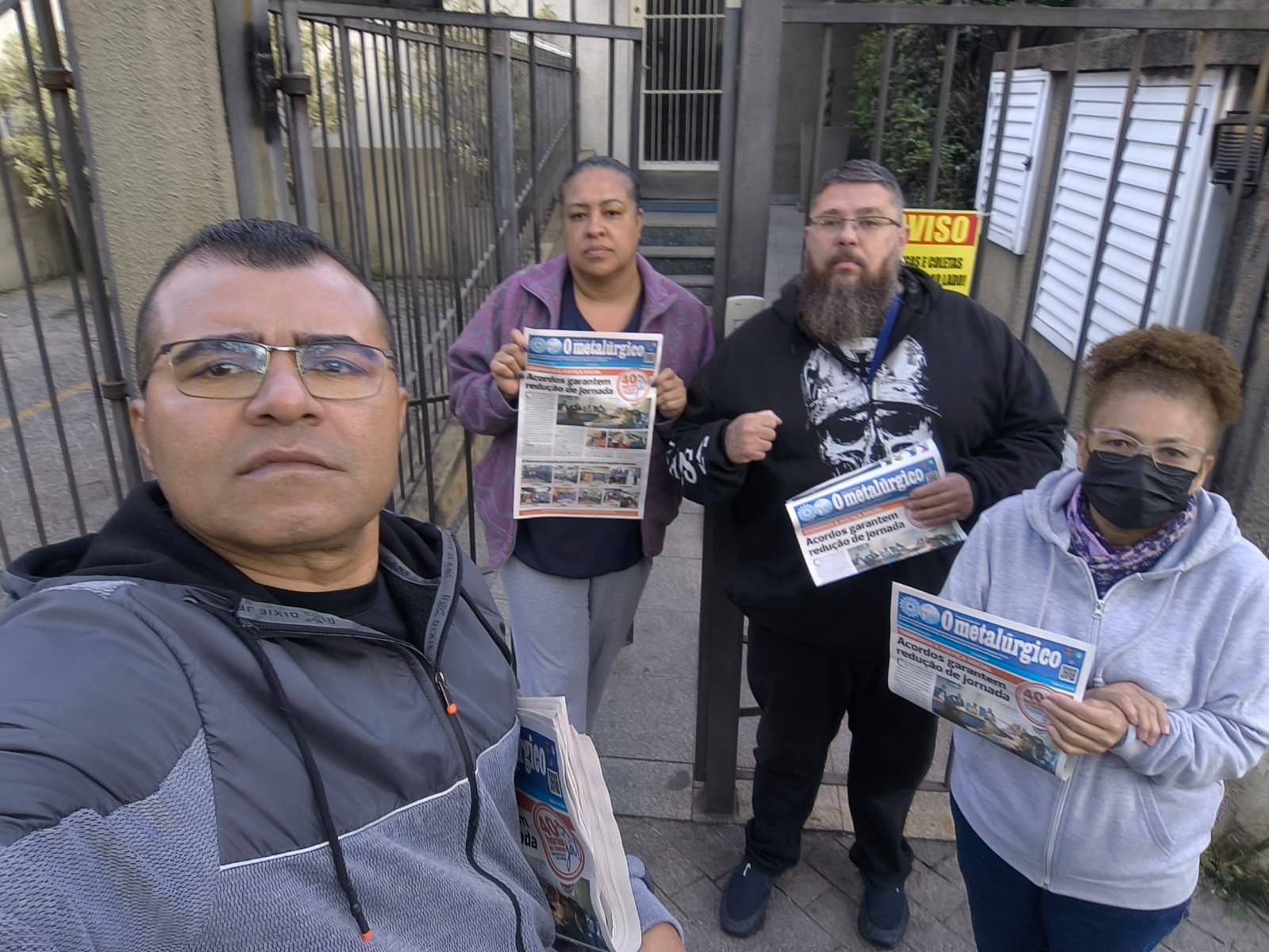 Diretores do Sindicato entregam à categoria o novo jornal O Metalúrgico com ênfase na redução da jornada, sem redução salarial