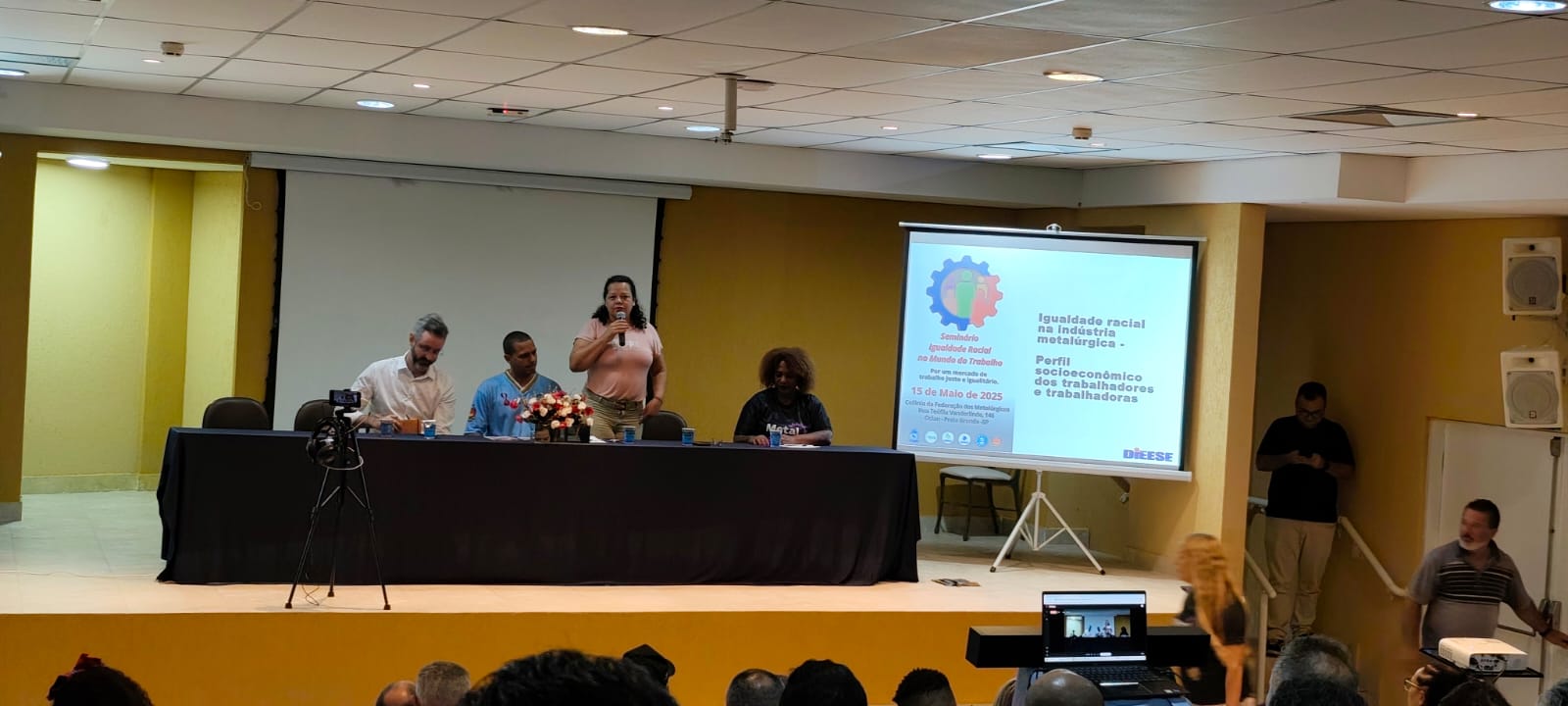 A Federação dos Metalúrgicos do Estado de São Paulo, presidida por Eliseu Silva Costa, em parceria com a CNTM, através de sua Secretaria de Políticas para Diversidade, Inclusão Social e Promoção da Igualdade, sob a coordenação de Rosemary Prado, realizou o Seminário “Igualdade Racial no Mundo do Trabalho”, com a finalidade de debater e aprofundar caminhos de consciência e ação social contra as discriminações existentes em nossa sociedade e entrentar as desigualdades no mundo do trabalho a partir de ações sindicais concretas, entre elas a inclusão de cláusulas de equidade racial nas Convenções e nos Acordos Coletivos e a adesão ao Pacto Nacional pela Igualdade Racial no Trabalho, por meio da assinatura de uma carta-compromisso.