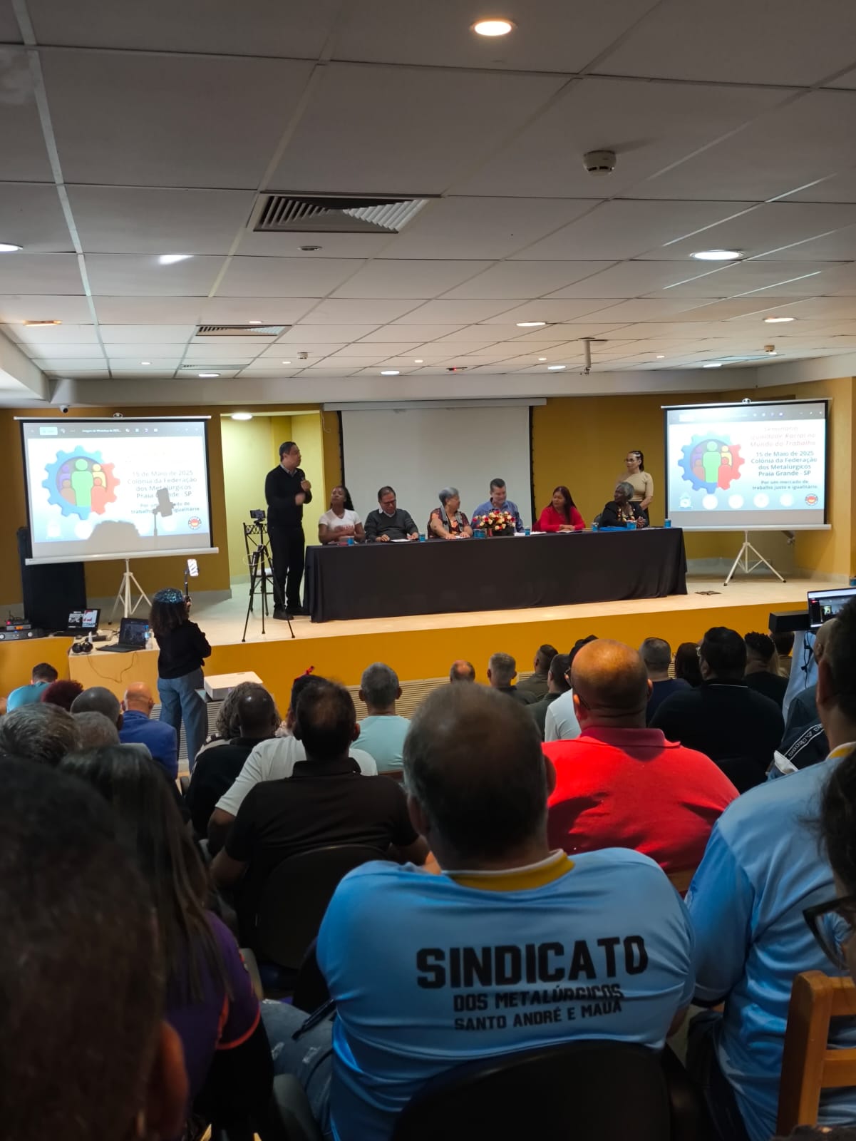 Sindicato dos Metalúrgicos de São Paulo e Mogi das Cruzes presente – Participaram cerca de 200 pessoas presenciais e 300 online. Pelo Sindicato dos Metalúrgicos de São Paulo e Mogi das Cruzes, representando o presidente Miguel Torres (Força Sindical, CNTM e Sindicato dos Metalúrgicos de São Paulo e Mogi das Cruzes), participaram os diretores Juruna, Teco e Zé Silva, as diretoras Alsira, Ester, Yara, Sonete e Leninha e as companheiras Renata, Lucilene e Marta.