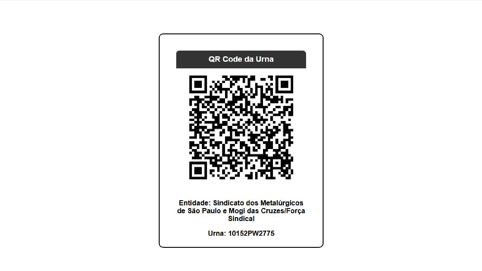Clique aqui ou nas imagens abaixo ou mire a câmara do seu celular no QR Code da Urna oficial do Sindicato dos Metalúrgicos de São Paulo e Mogi das Cruzes/Força Sindical, preencha os campos da cédula, participe do Plebiscito Popular 2025 votando SIM e divulgue!