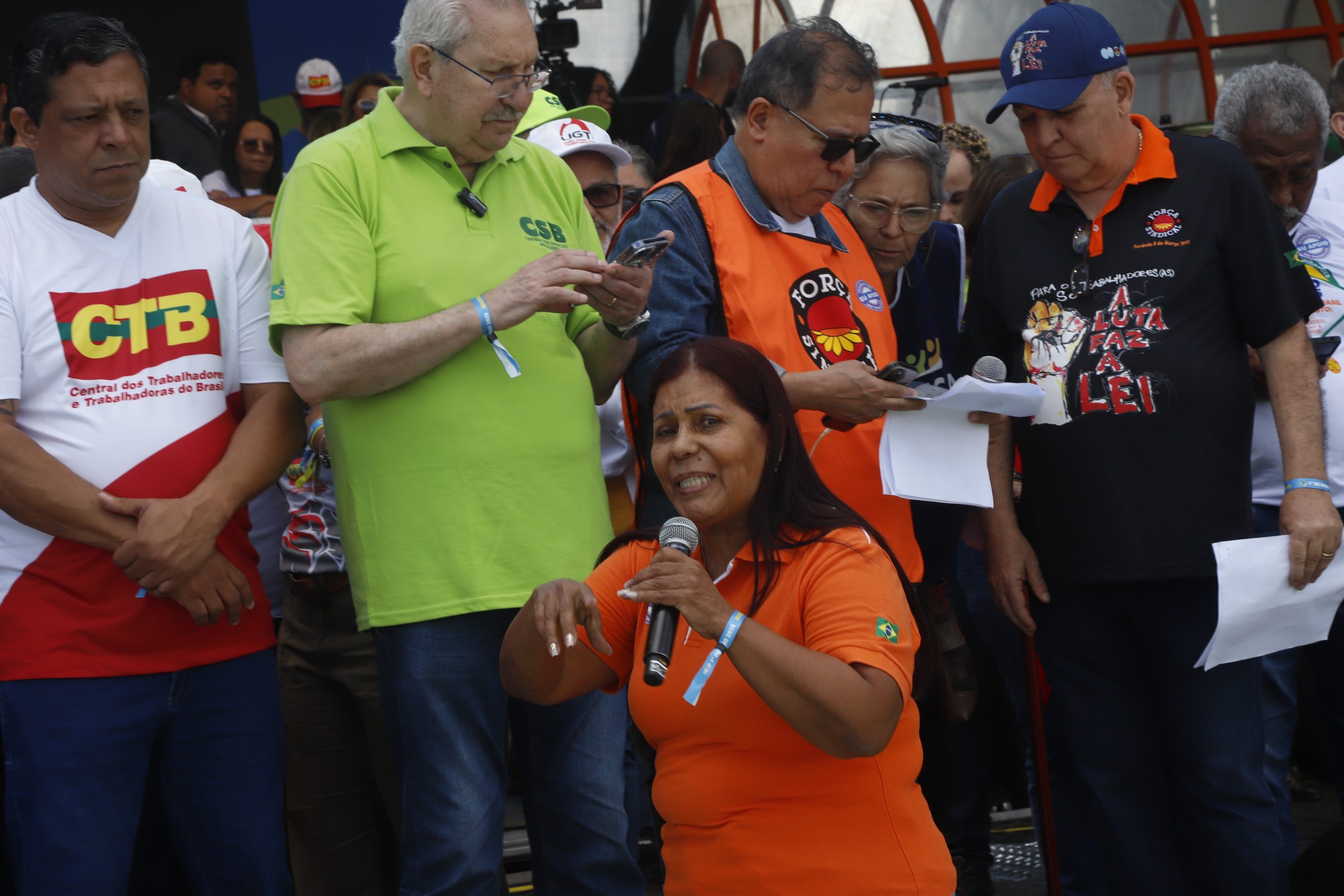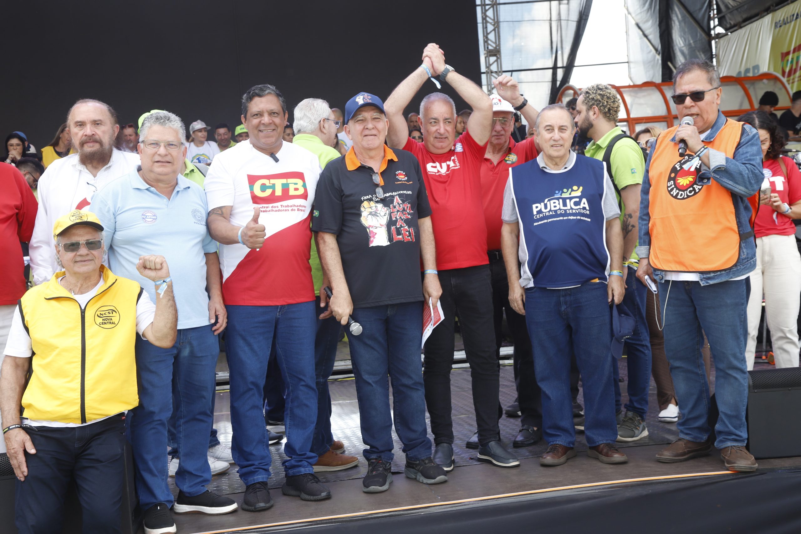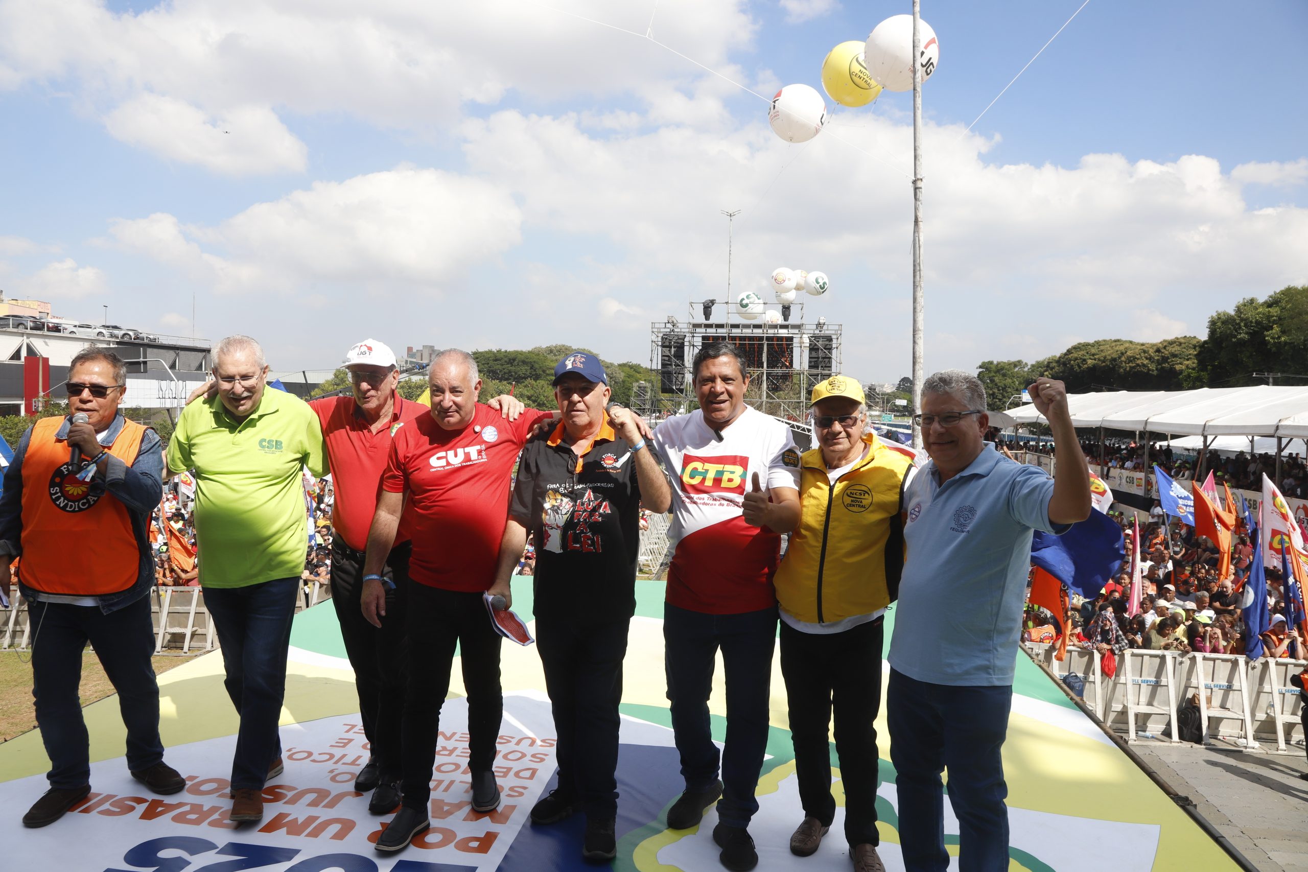 Miguel Torres, presidente da Força Sindical, CNTM e Sindicato dos Metalúrgicos de São Paulo e Mogi das CruzesSérigio Nobre da CUTPatah da UGTAdilson da CTBNeto da CSBLuisinho da Nova CentralJosé Gozze (Pública, central sindical do servidor)
