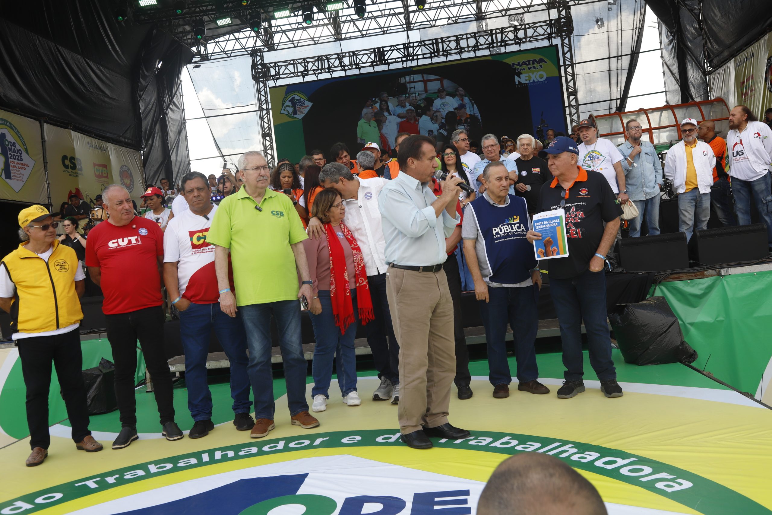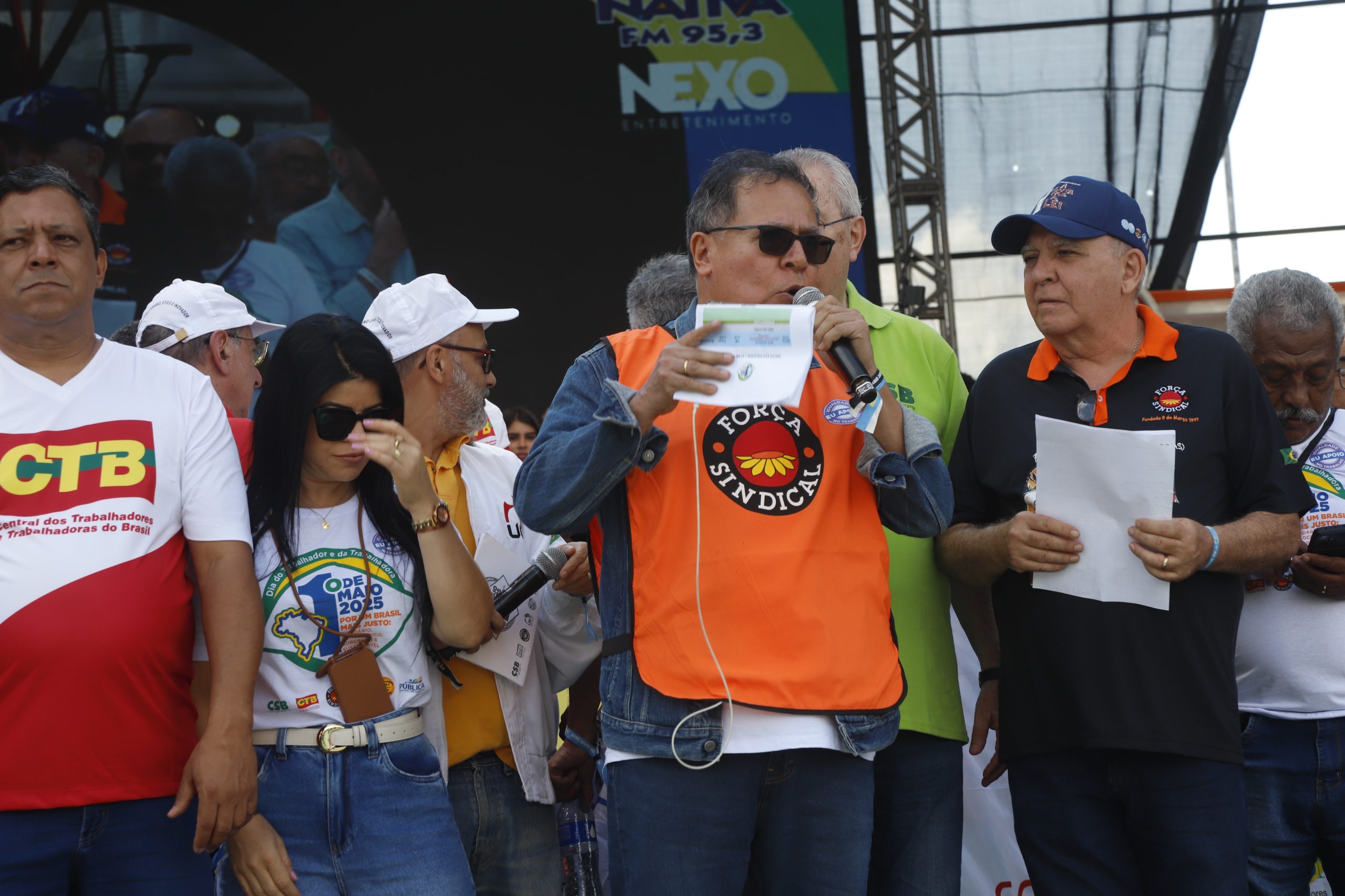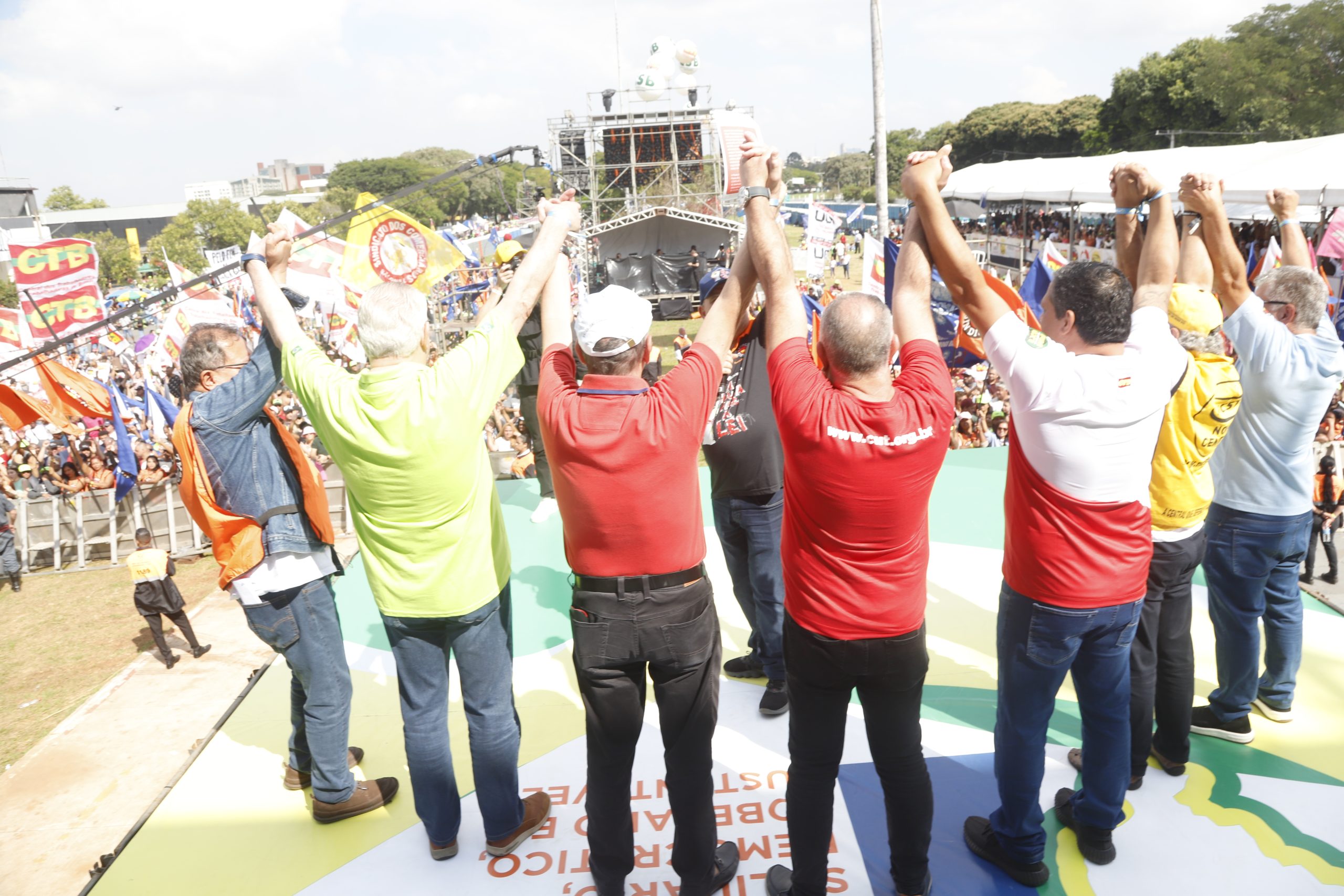Miguel Torres, presidente da Força Sindical, CNTM e Sindicato dos Metalúrgicos de São Paulo e Mogi das CruzesSérigio Nobre da CUTPatah da UGTAdilson da CTBNeto da CSBLuisinho da Nova CentralJosé Gozze (Pública, central sindical do servidor)