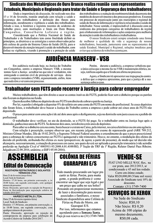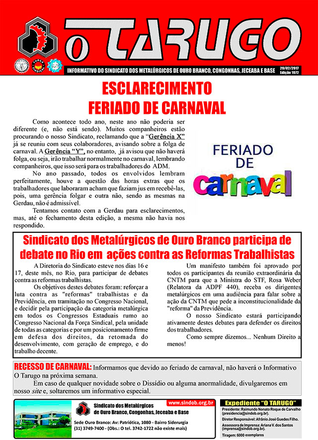 Informativo Tarugo destaca luta metalúrgica contra as reformas Trabalhista e da Previdência
