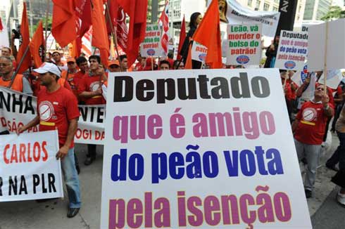 Um dia antes do ato na Paulista, a campanha pela isenção da PLR do IR já havia reunido 20 mil trabalhadores metalúrgicos numa marcha pela rodovia Anchieta, no ABC paulista. Também na quarta-feira (21), dirigentes sindicais, entre eles Miguel Torres, presidente do Sindicato dos Metalúrgicos de São Paulo e Mogi das Cruzes, reuniram-se com o ministro da Fazenda, Guido Mantega, e Gilberto Carvalho, da secretaria-geral da Presidência da República, para pedir o fim da cobrança do imposto na PLR e que a PLR seja tributada separadamente do salário. Hoje o imposto incide sobre a soma do salário com a PLR, o que muitas vezes eleva a faixa de renda do trabalhador na tabela do IR.