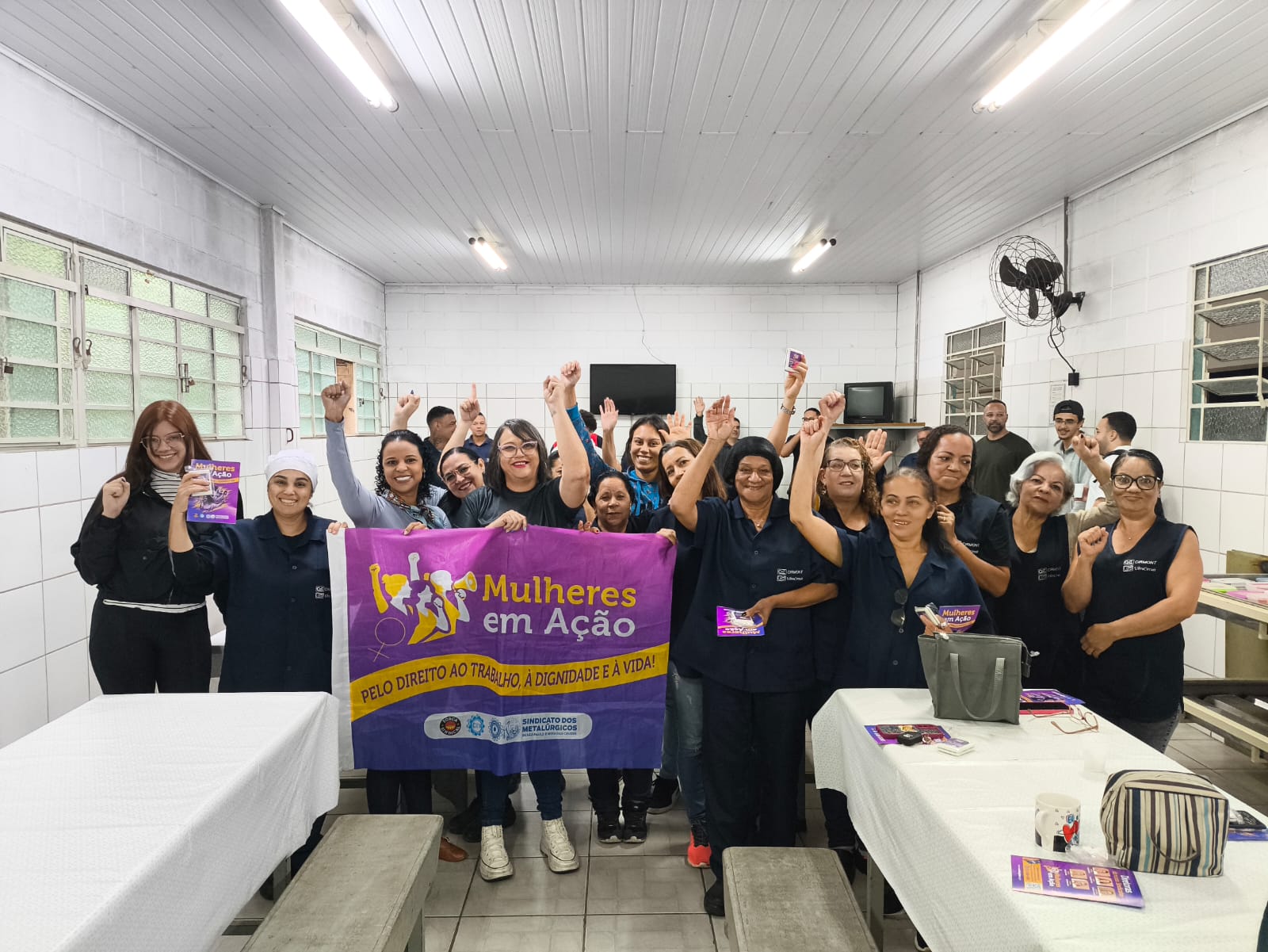 Messias e Renata com as trabalhadoras da Cirmont e Ultracirquit
