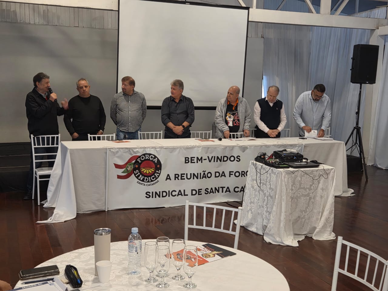 A estadual da Força SC é presidida por Osvaldo Mafra e nesta reunião, realizada em Videira/SC, 25/09/2025, debateu as conjunturas estadual e nacional, a necessidade de o movimento sindical intensificar a divulgação das pautas da classe trabalhadora para as lideranças políticas locais, regionais e nacionais e para a sociedade em geral. “São pautas que beneficiam os trabalhadores e trabalhadoras pela manutenção e ampliação dos direitos trabalhistas, sociais e previdenciários”, diz o presidente Miguel Torres (Força Sindical, CNTM e Sindicato dos Metalúrgicos de São Paulo e Mogi das Cruzes). A reunião contou também com palestra de Crystiane Leandro Peres, do Dieese, com análises dos cenários político e sindical e dos impavtos do “tarifaço” em Santa Catarina.