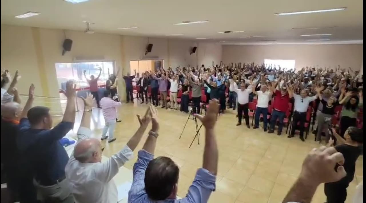 Ao final, os presentes fizeram gesto simbólico de união, reforçando solidariedade entre sindicatos e trabalhadores e encerrando o ato em clima de esperança e mobilização.