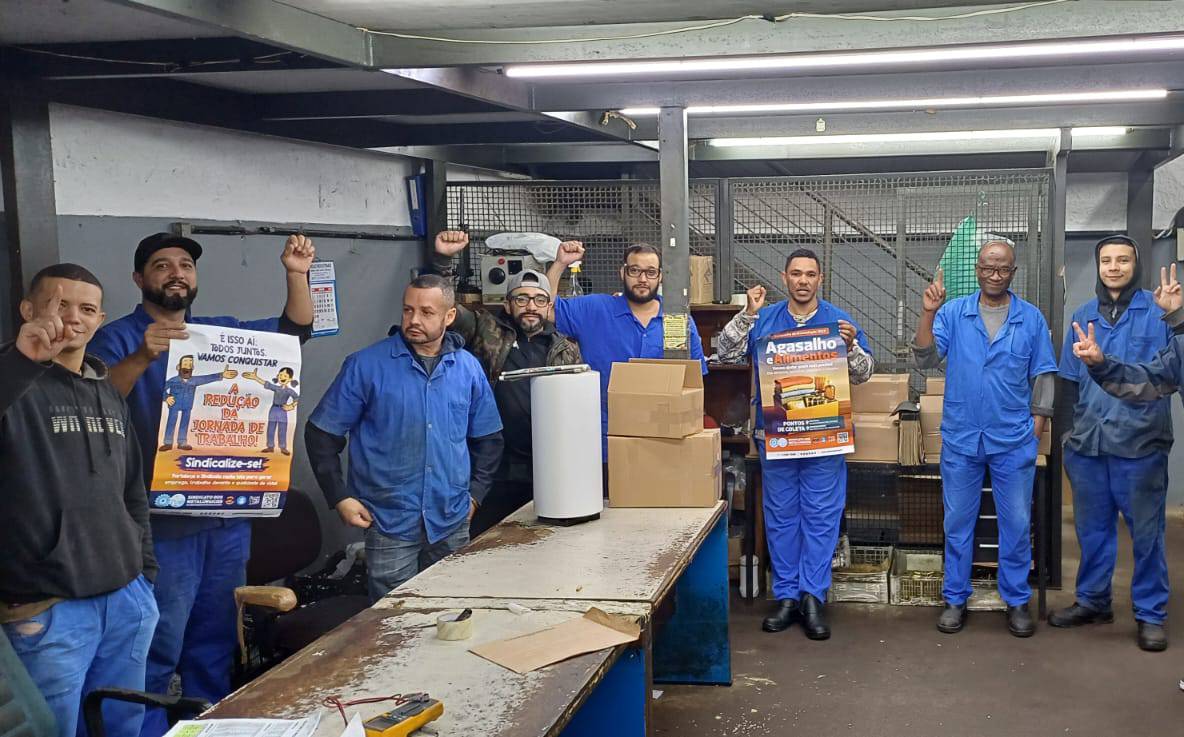 Na SOLETEC, base do diretor Nivaldo. Pauta: campanha do agasalho/alimentos e pelas 40h (sem redução salarial)