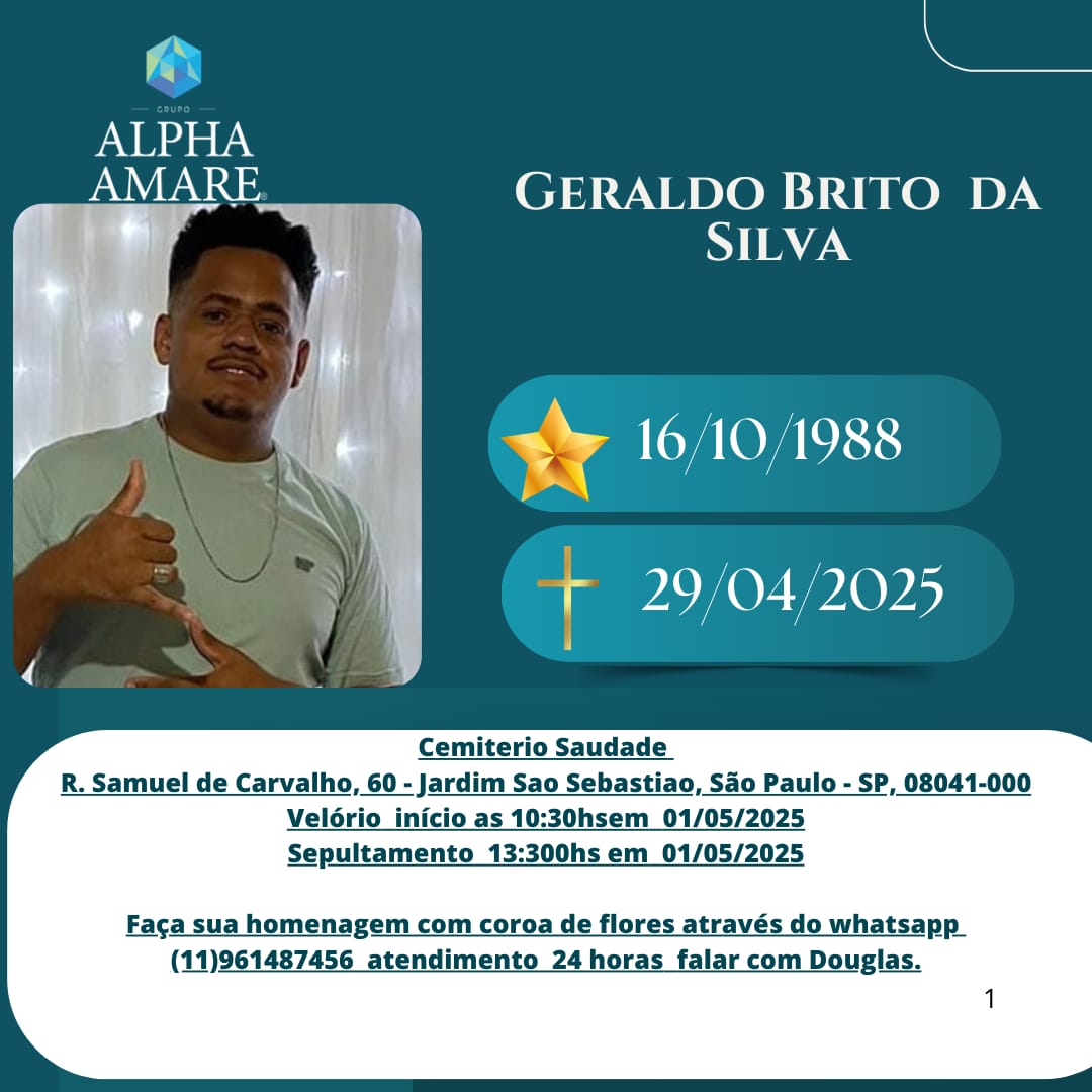 Recebemos com muita tristeza a notícia do falecimento, aos 36 anos, de Geraldo Brito da Silva, trabalhador da Atlas Schindler. Aos familiares e amigos, expressamos nossos sentimentos. Que Deus conforte o coração de todos!