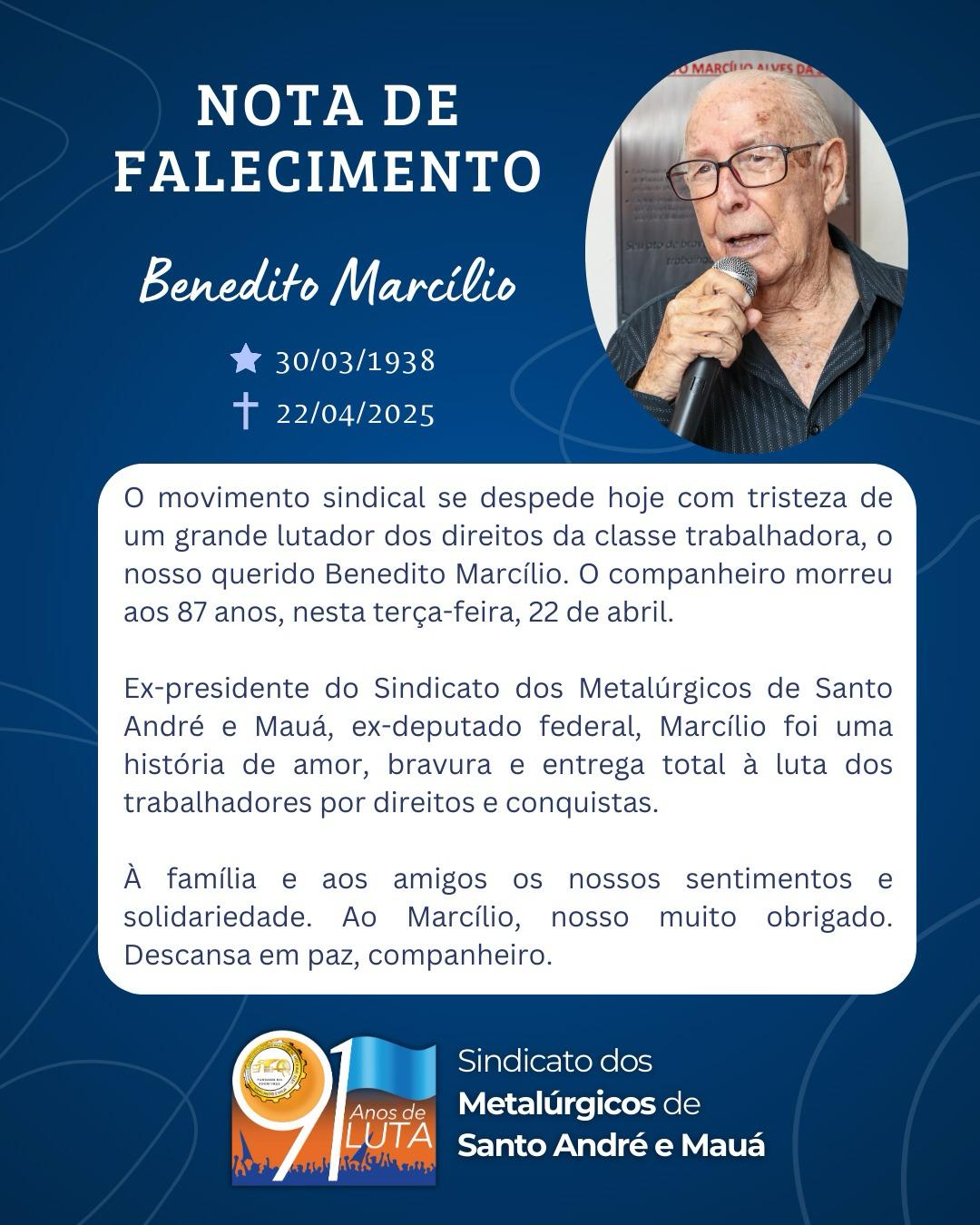 Nota de pesar pelo falecimento de Benedito Marcílio