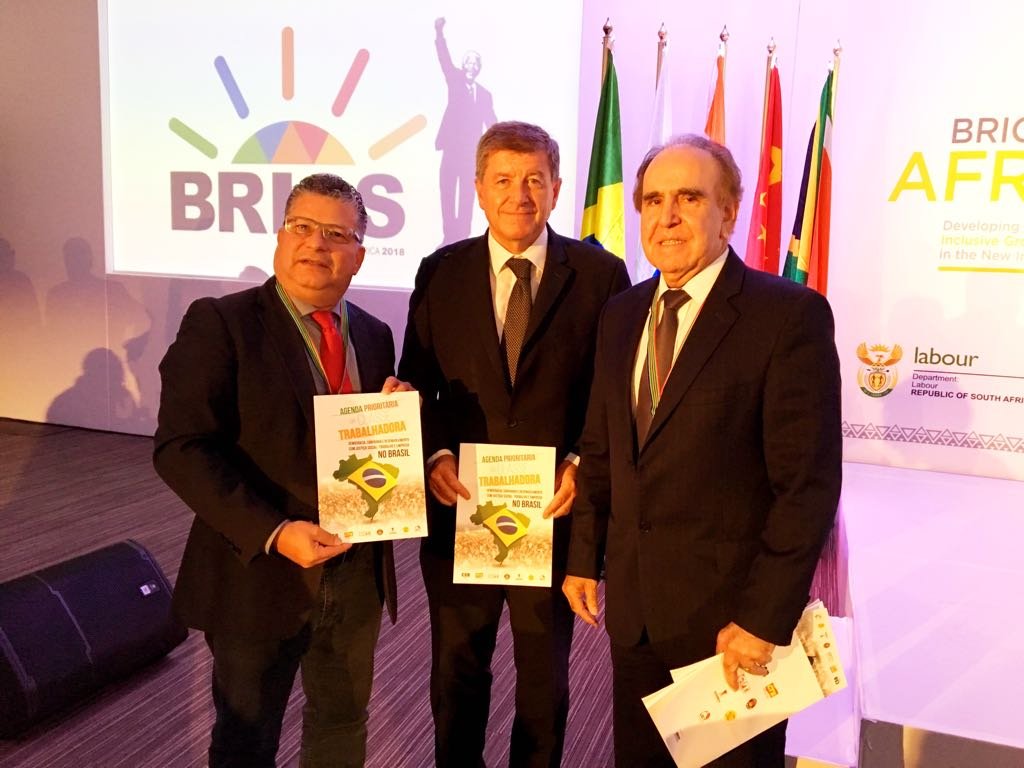 Durante o encontro do Brics, nesta quinta-feira (02), a Força sindical entregou a Agenda prioritária da Classe trabalhadora ao Diretor Geral da OIT, Guy Ryder.