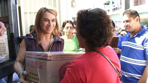 Fotos Box MidiaTV![]() Elza Pereira, diretora de finanças do Sindicato, distribuiu cestas |