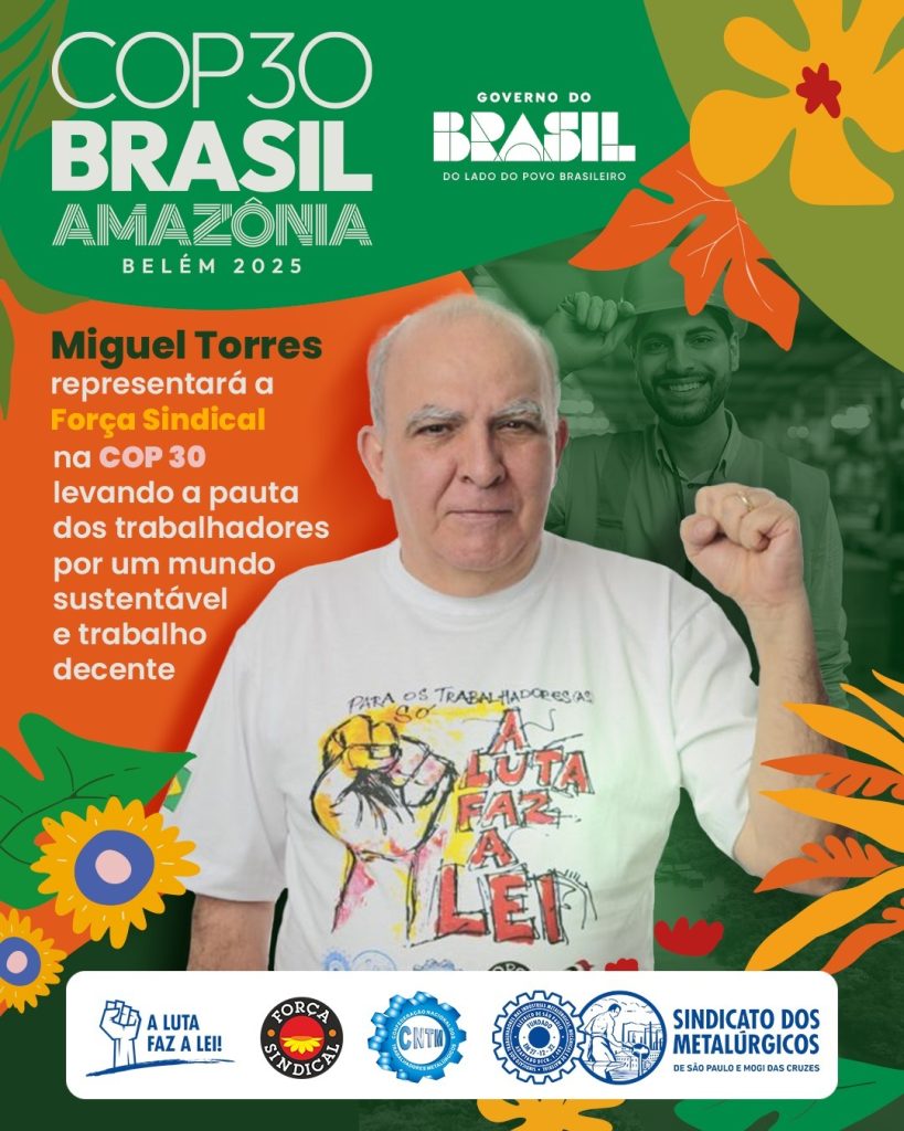 “Transição justa, com presença da classe trabalhadora e trabalho decente”, defende Miguel Torres, na COP30