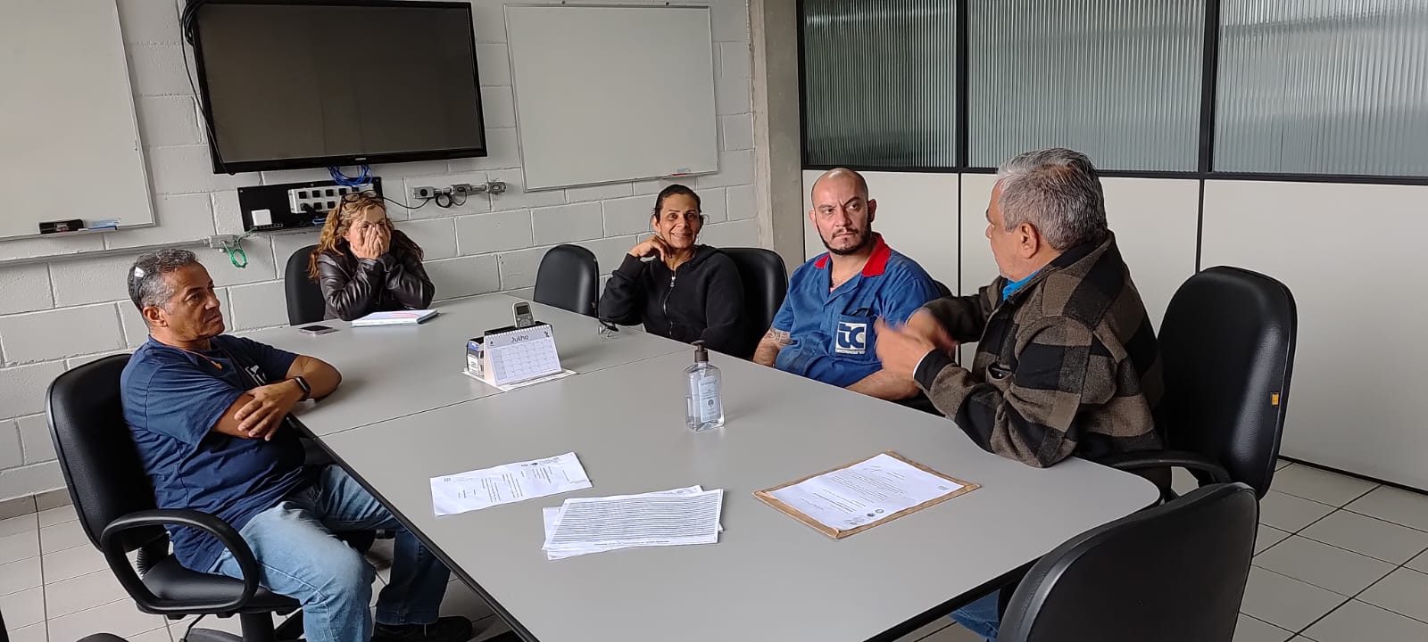 Tadeu Morais e comissão de trabalhadores em reunião com a empresa Tecnocurva