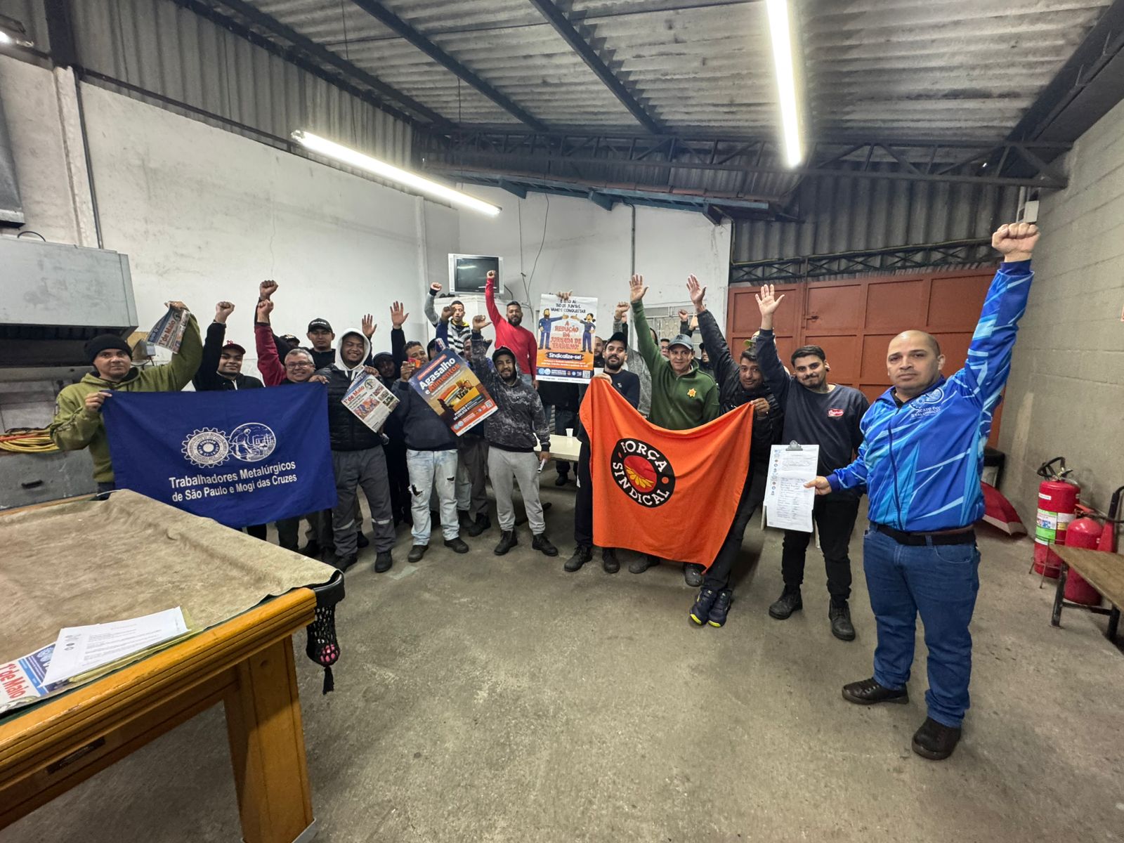 Tatu com os trabalhadores da TUBOAR e EXAUSCENTER, da base do diretor Teco. Pauta: jornada de 40h, sindicalização e campanha do agasalho/alimentos