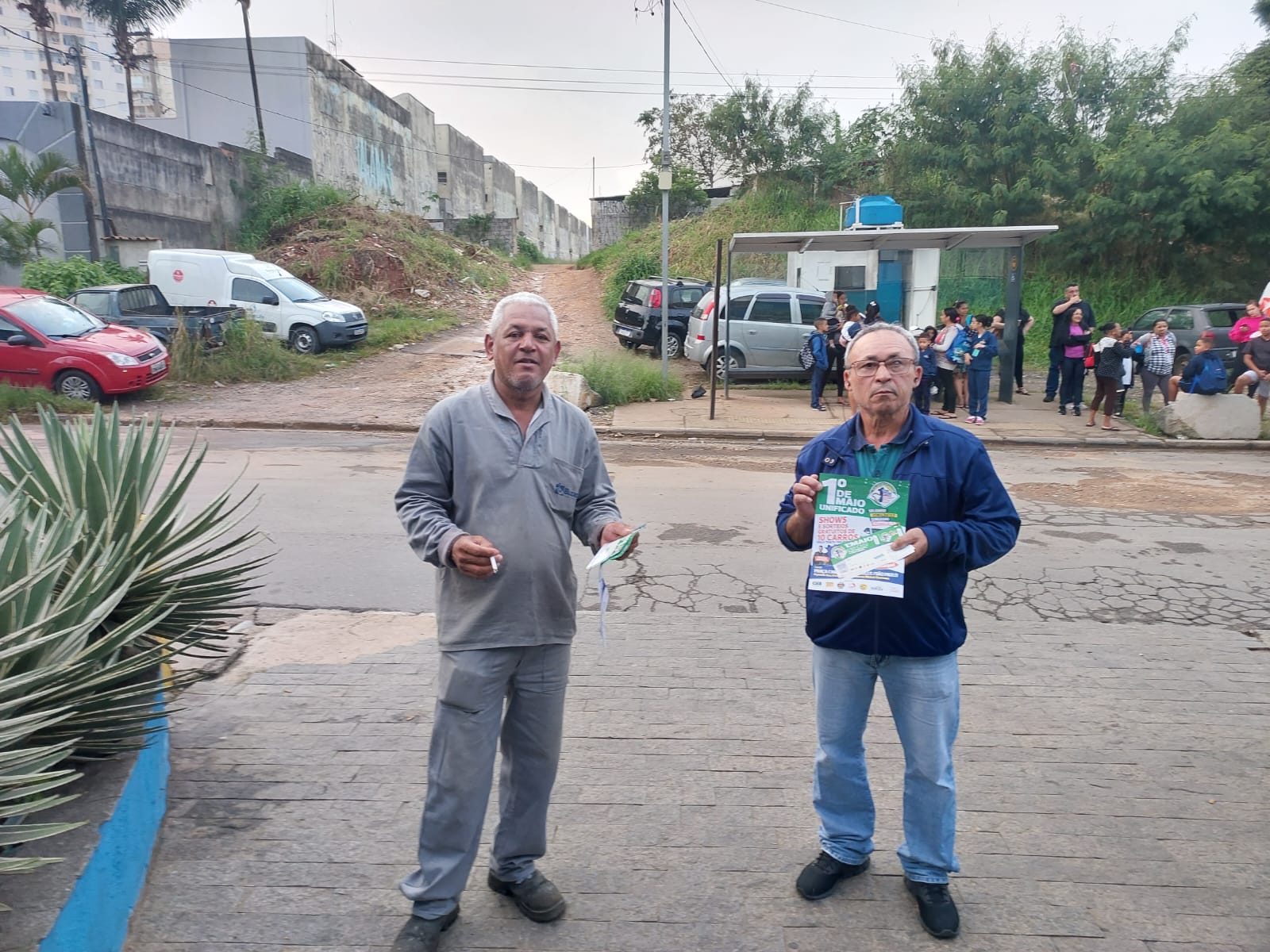 Trabalhadores da Buzas – com panfleto de divulgação do 1º de Maio 2025