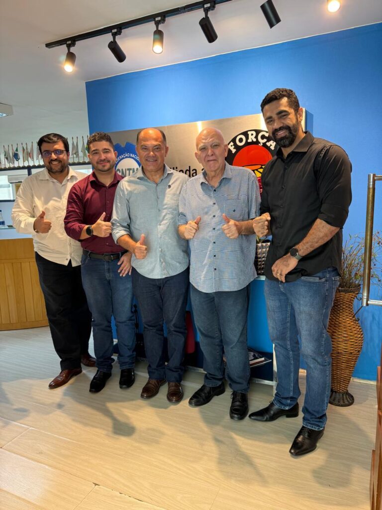 Miguel Torres recebe em Brasília, na sede da CNTM/Força Sindical, os companheiros Henrique César, Luciano Marques. Marlos Luz e Leandro Messias.