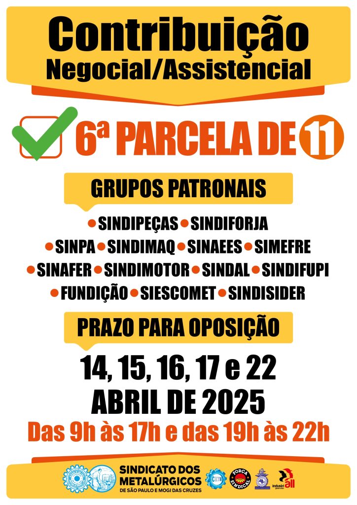 O Sindicato dos Metalúrgicos de São Paulo e Mogi das Cruzes, fundado em 27 de dezembro de 1932, sempre lutou pela democracia, liberdade de expressão e pelos direitos dos trabalhadores. Para a consecução de tais objetivos, imperativo estabelecer condições adequadas, isto é, fontes de custeio para a implementação das responsabilidades sindicais. Embora o Sindicato lute […]