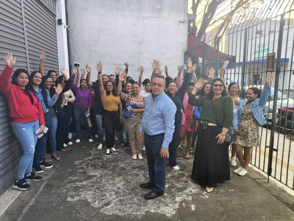 Diretora Cristina com as companheiras da Tecnotrafo, base do diretor Lourival