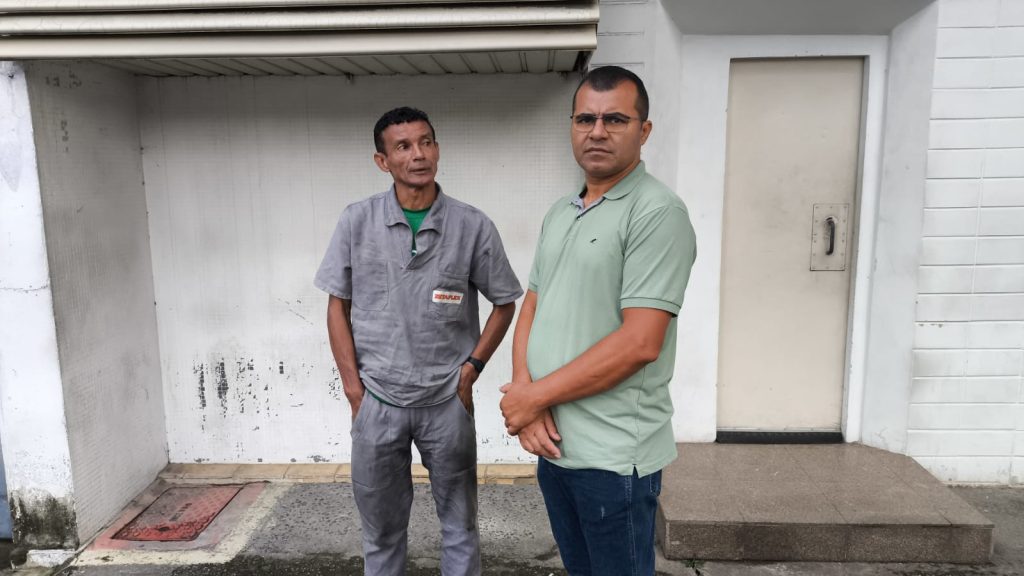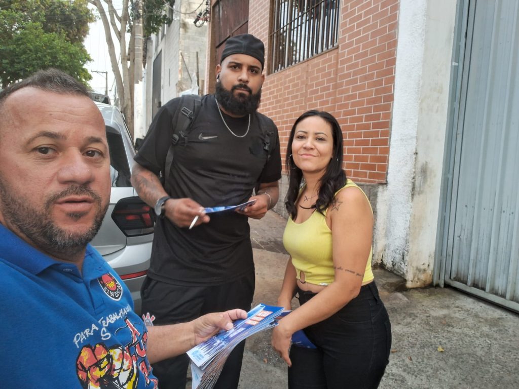 Trabalhadora da Dectech recebe informativo do Sindicato – ação de base do diretor Carlão