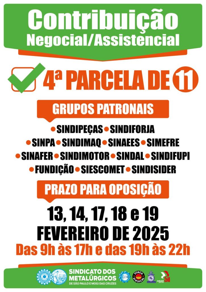 O Sindicato dos Metalúrgicos de São Paulo e Mogi das Cruzes, fundado em 27 de dezembro de 1932, sempre lutou pela democracia, liberdade de expressão e pelos direitos dos trabalhadores. Para a consecução de tais objetivos, imperativo estabelecer condições adequadas, isto é, fontes de custeio para a implementação das responsabilidades sindicais. Embora o Sindicato lute […]